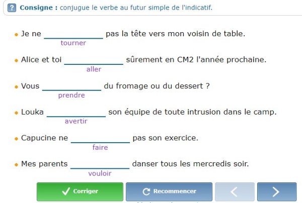 Conjuguer au futur dans une phrase. Clique sur l’image (Conception L’instit.com) :